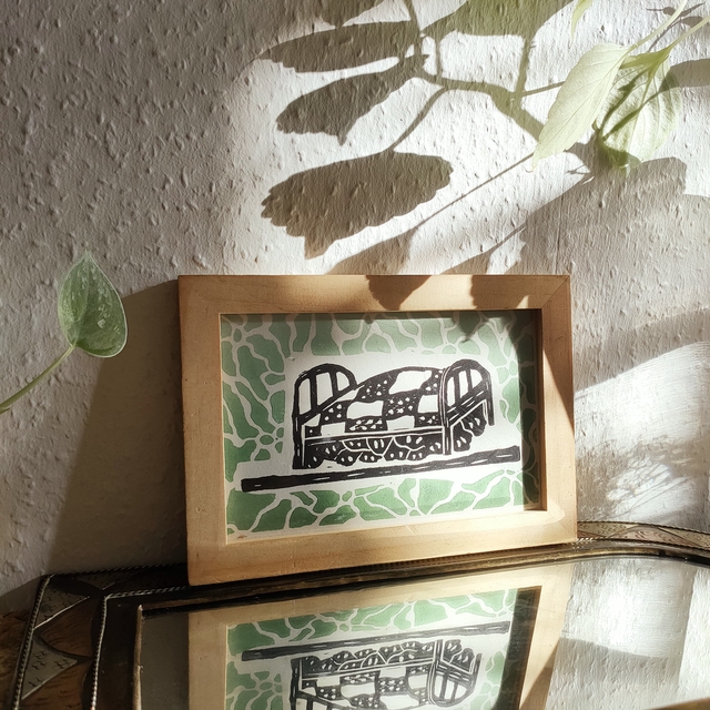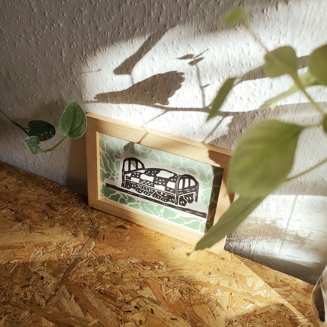 'MY BED'S FRIENDS' - 10x15cm - Estampe originale linogravure imprimée à la main